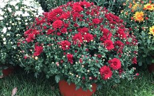 Make a color splash with an assortment of fall mums to spice up your fall decorating.